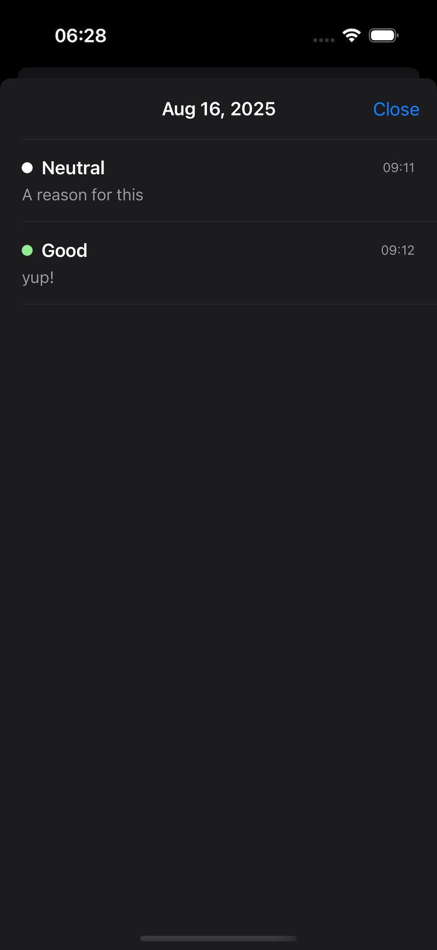 Note: This app is designed solely for tracking your mood and does not offer recommendations. If you're experiencing distress, please contact your mental health care provider for assistance.